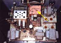 With all tubes removed, I slowly increased voltage on the variac and monitored current draw, while carefully checking for smoke, strange noises etc. Everything was looking good, and then I noticed the smoke rising out of the Final Amp assembly! "Danger Will Robinson -- Danger!!" Off went the power and I looked as the last of the smoke disappeared. I was perplexed! There were no tubes in the unit, and the smoke was not anywhere near a transformer!! Then it struck me, that the bias circuit does not need any tubes, and I did replace the selenium rectifier with the diode. Yup! A quick look showed that I put the diode in backwards. It, and a resistor, had taken on a much darker color. With those two components replaced, I again power up the radio, and this time achieved full voltage with minimal current draw. That's better!