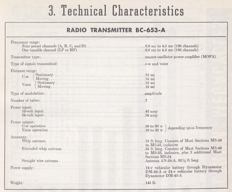 TM_11-630 provides the specifications for both units: