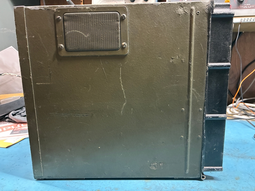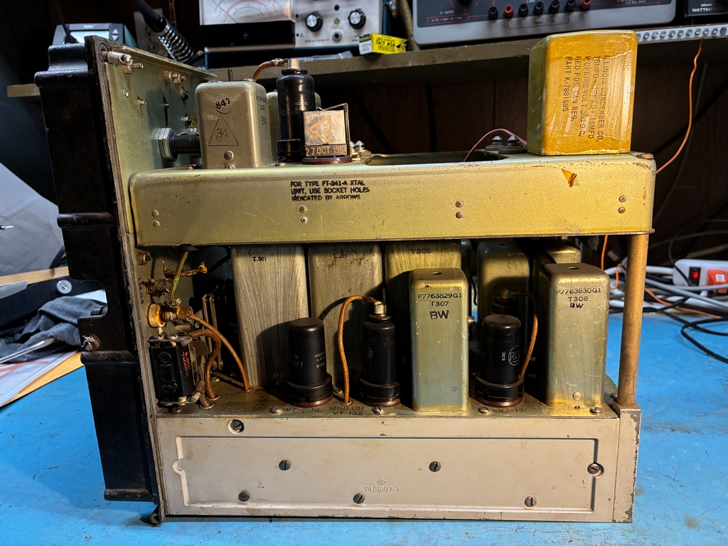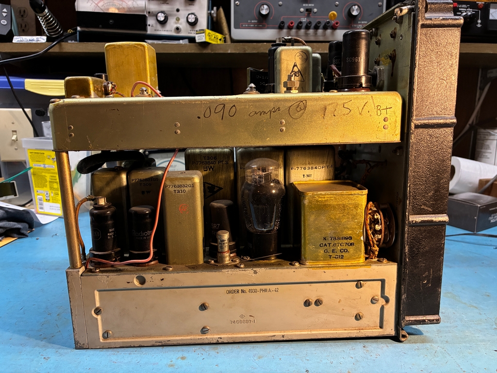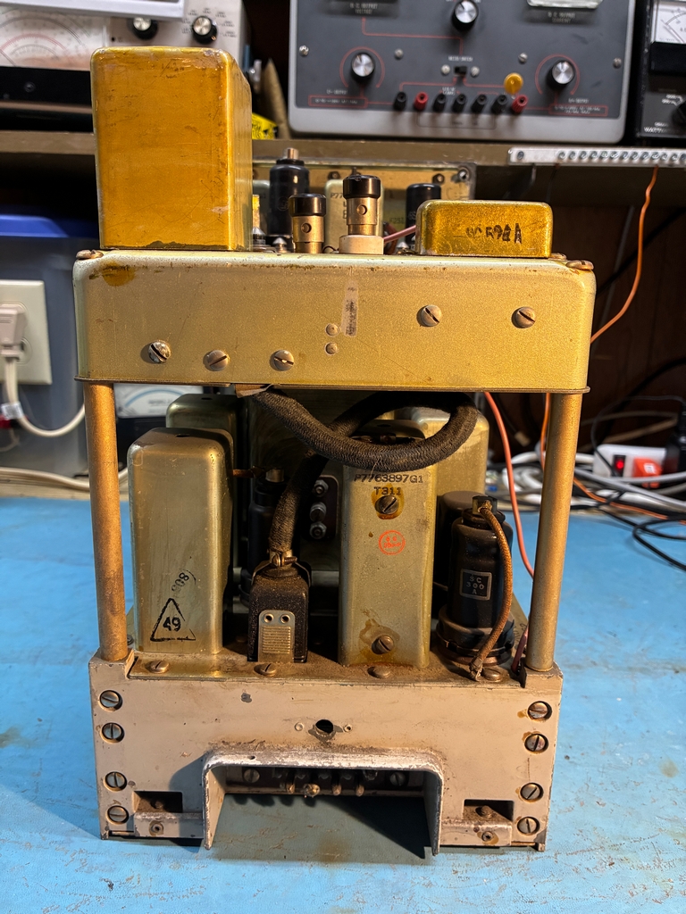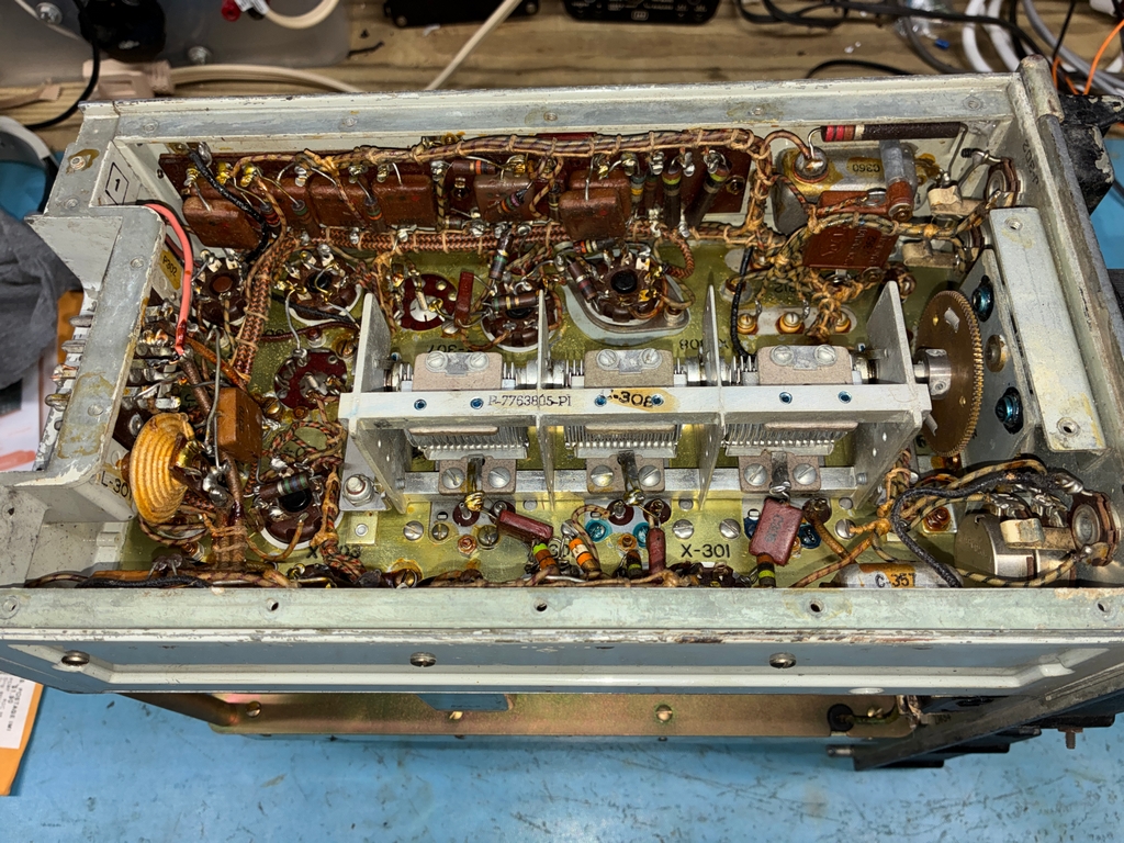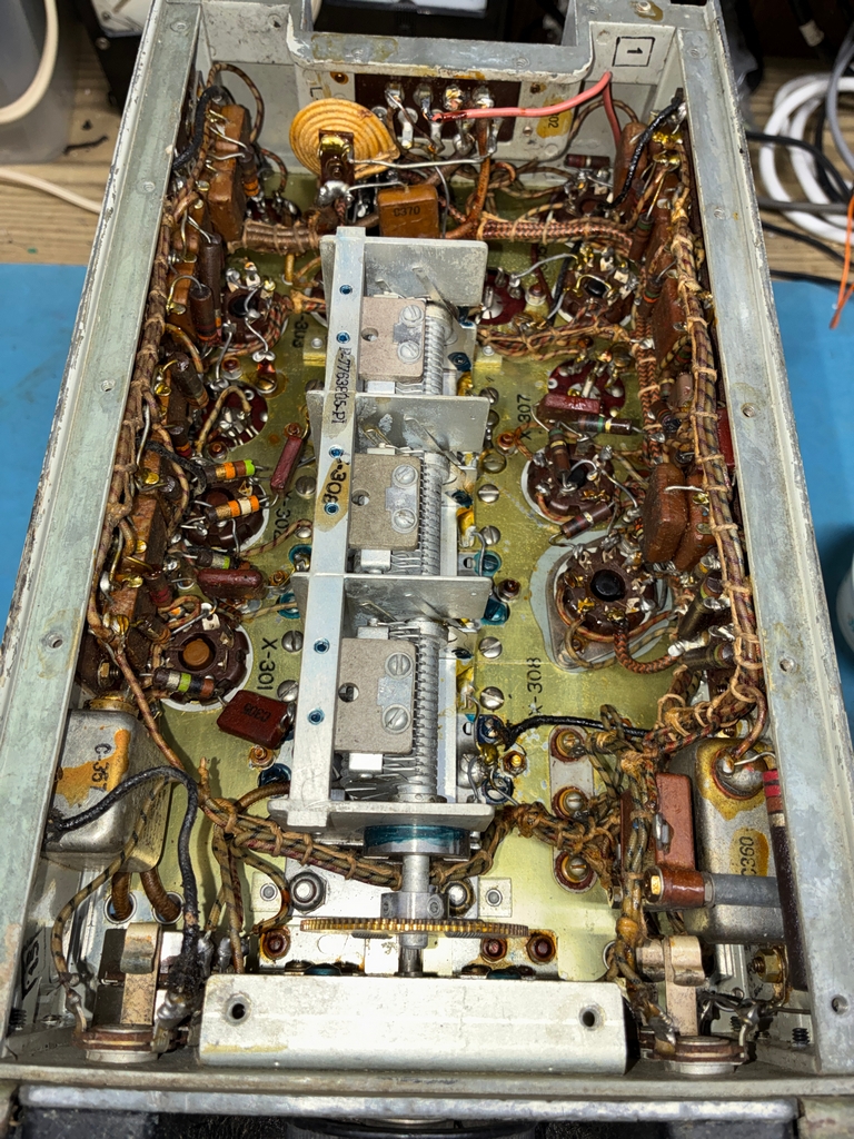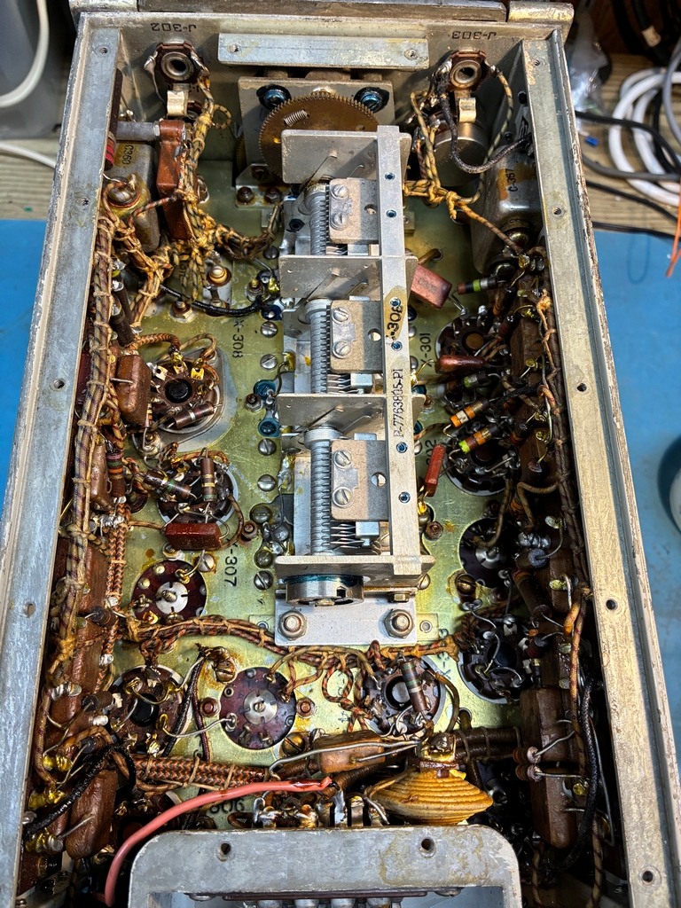To re-installed the tuning mechanism, the front panel needs to be removed. This does not look to be particularly hard to do, but it gets a bit more difficult when one is trying to move a 143 pound brick around the workbench.....