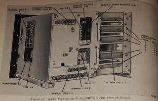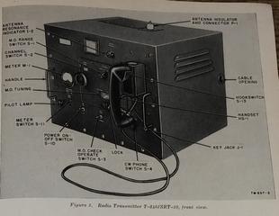 There is not a lot of information available about this transmitter which was part of the AN/SRT-10 system. It seems to have served in Army maritime service from WW II through the mid 1960s.
