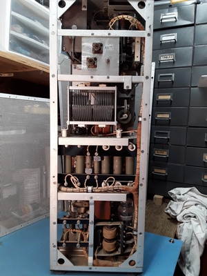 | The RMU was stored without a transit case so it will require some cleanup. What I was delighted to find was that it is also in stock condition and only missing the HV and Filament transformers. Since these are 800Hz transformers, that is not significant for me. |