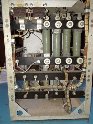 The large cage behind the line voltage / PA filament voltage meter is R-206, the meter multiplier resistor used when measuring the line voltage. |