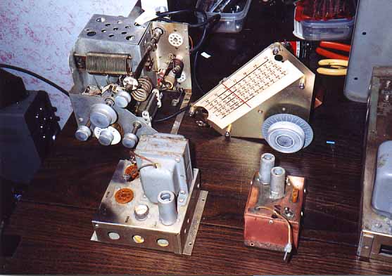 In the above photo, going clockwise from top left, is the "Multiplier Final Amp" unit, the VFO unit, the Speech Amplifier Modulator unit, and the Buffer Crystal Oscillator unit.