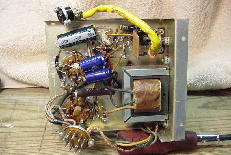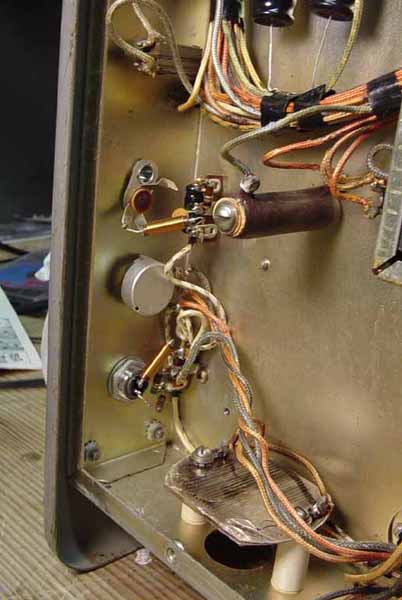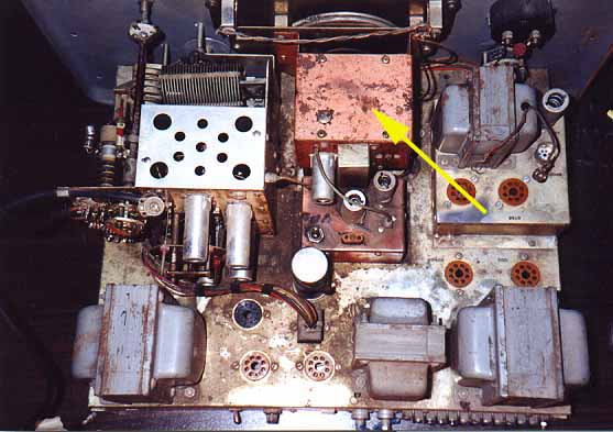 With all tubes removed, I slowly increased voltage on the variac and monitored current draw, while carefully checking for smoke, strange noises etc. Everything was looking good, and then I noticed the smoke rising out of the Final Amp assembly! "Danger Will Robinson -- Danger!!" Off went the power and I looked as the last of the smoke disappeared. I was perplexed! There were no tubes in the unit, and the smoke was not anywhere near a transformer!! Then it struck me, that the bias circuit does not need any tubes, and I did replace the selenium rectifier with the diode. Yup! A quick look showed that I put the diode in backwards. It, and a resistor, had taken on a much darker color. With those two components replaced, I again power up the radio, and this time achieved full voltage with minimal current draw. That's better!