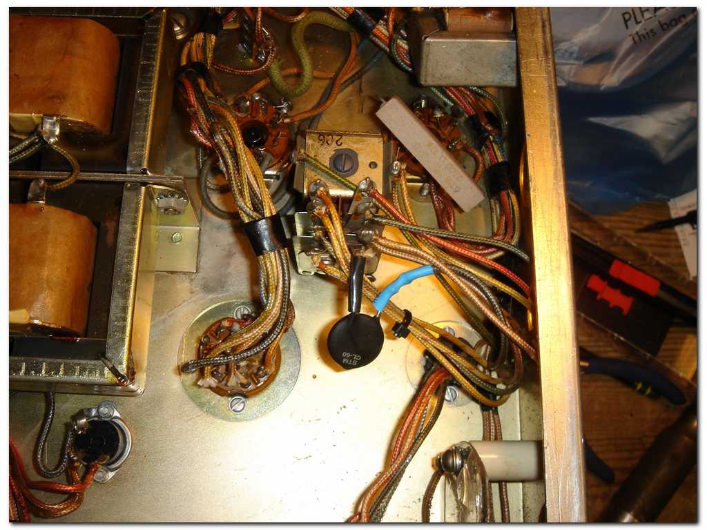 I added a thermistor into the plate primary circuit; this was to limit the inrush current when turning on the B+ (and to get rid of those loud "ka-chunks" that could at times shake the entire cabinet of the 5100B....). These get hot, so take care where mounting it!