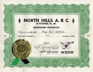 I became interested in radios during the CB craze of the early 1970s and started studying for my Novice license in 1973. It was with no small amount of trepidation that I rode my bicycle (I was too young for a driver's license) to the Perrysville Elemtary School north of Pittsburgh in July or August of 1973. My elmer Milt Moratis W3XX (ex K3AMI), principal of the school, administered the exam. My Novice license arrived in September!