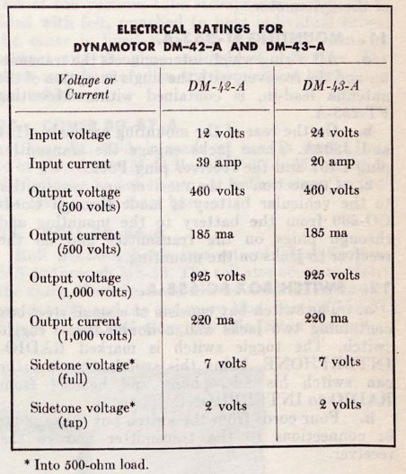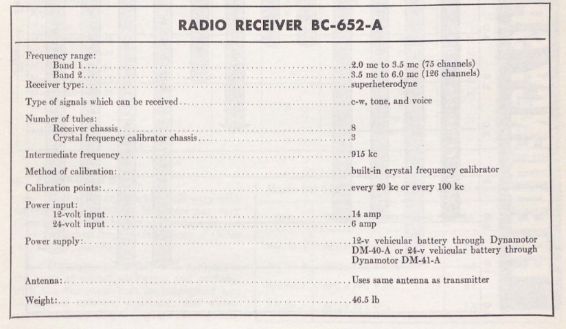 TM_11-630 provides the specifications for both units:
