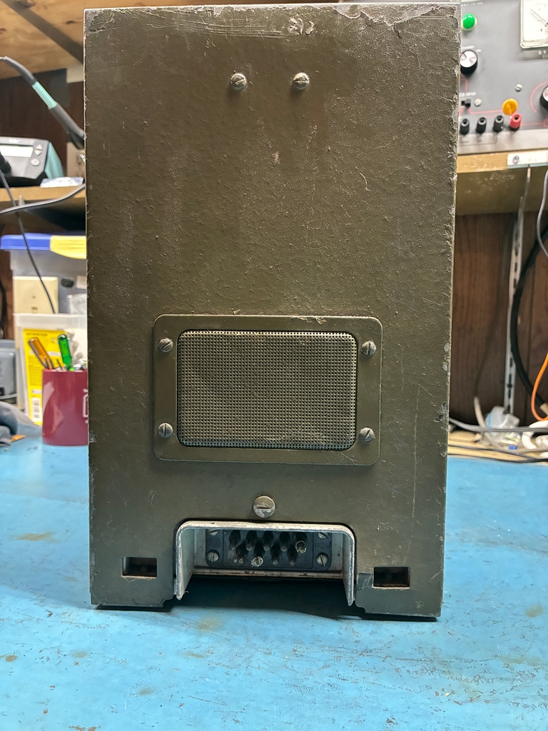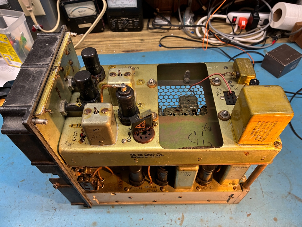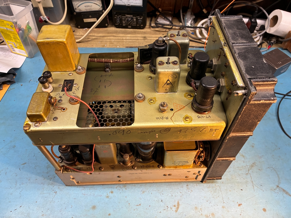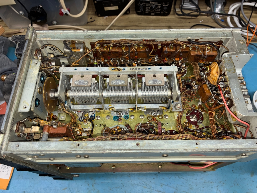 To re-installed the tuning mechanism, the front panel needs to be removed. This does not look to be particularly hard to do, but it gets a bit more difficult when one is trying to move a 143 pound brick around the workbench.....