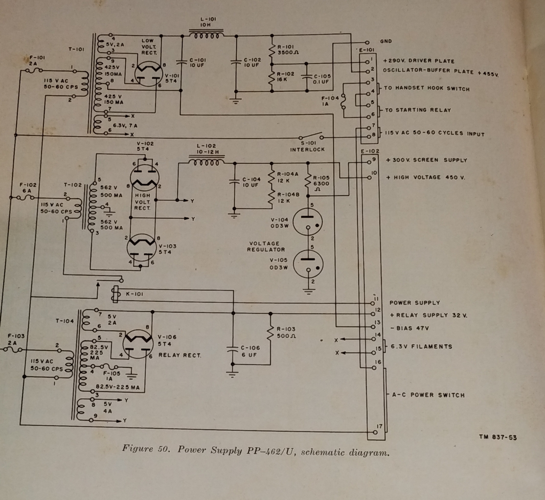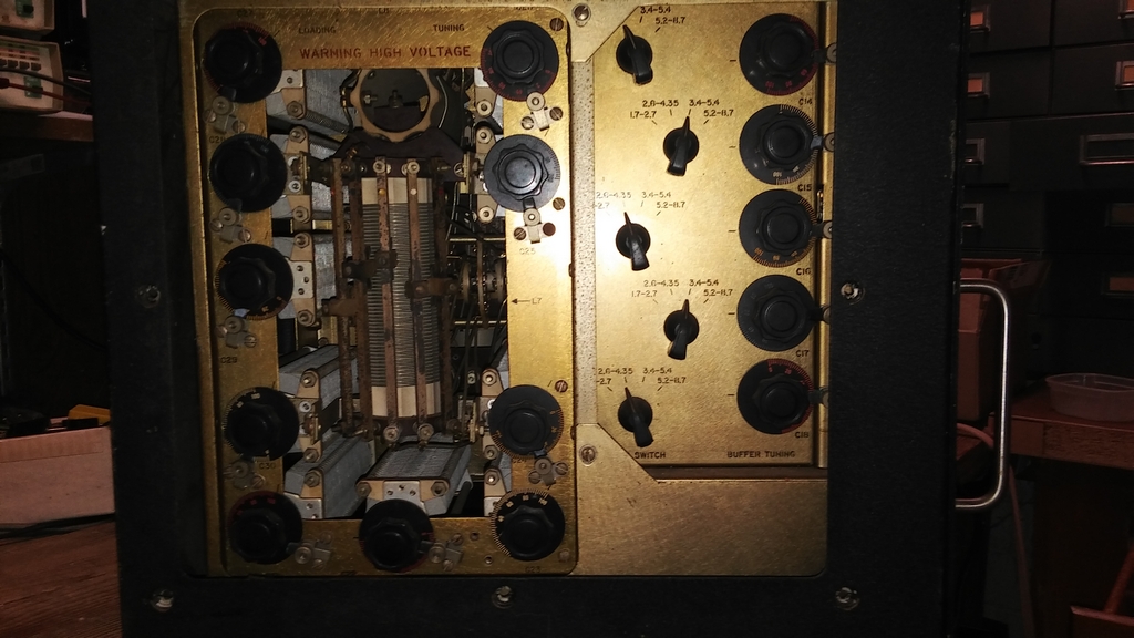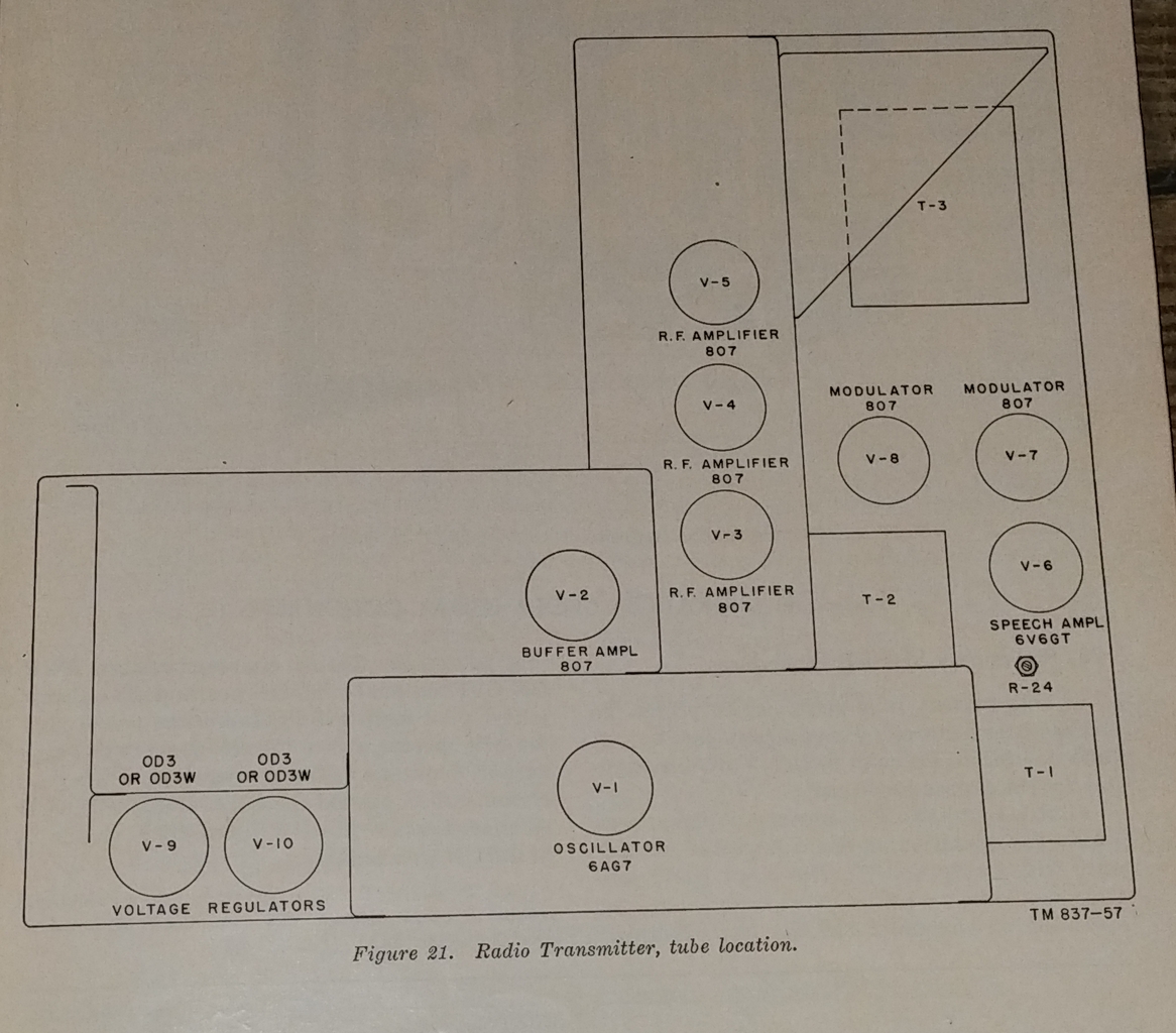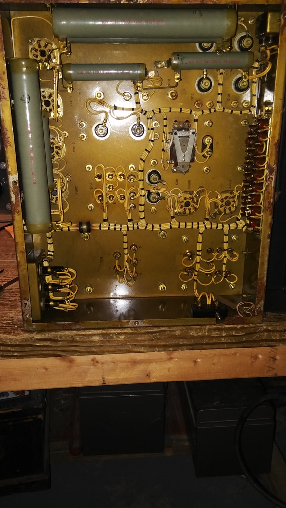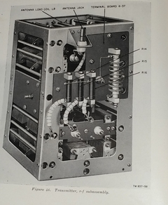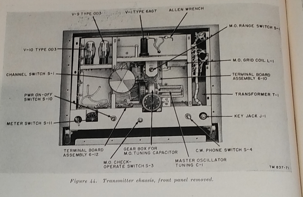 There is not a lot of information available about this transmitter which was part of the AN/SRT-10 system. It seems to have served in Army maritime service from WW II through the mid 1960s.
