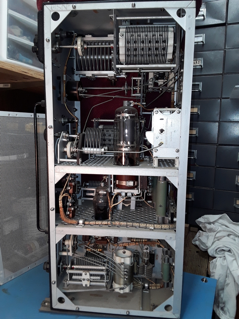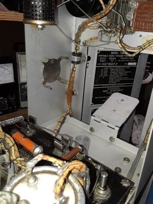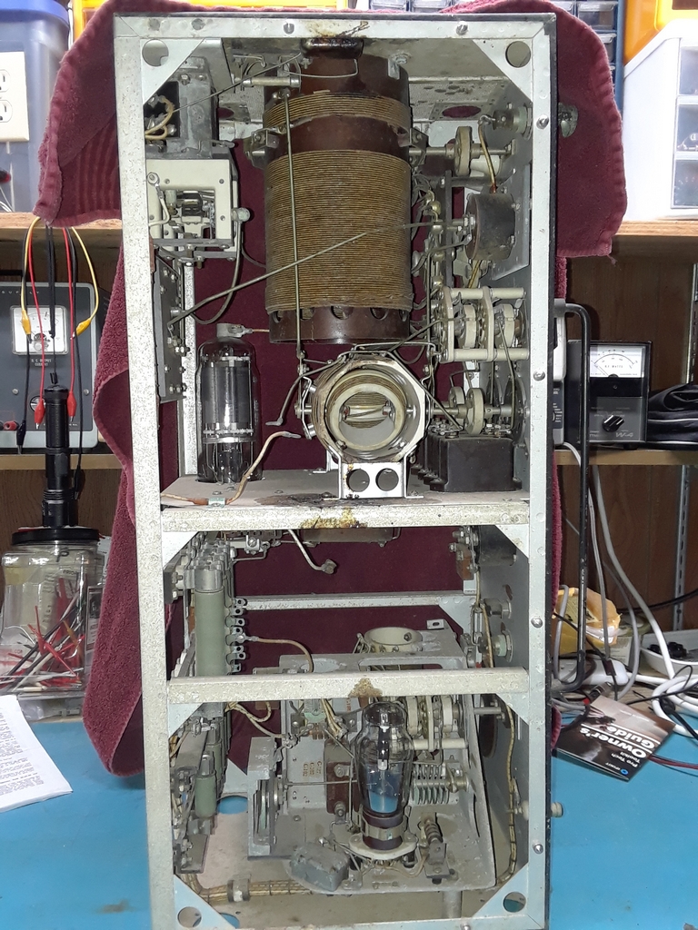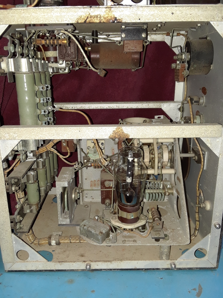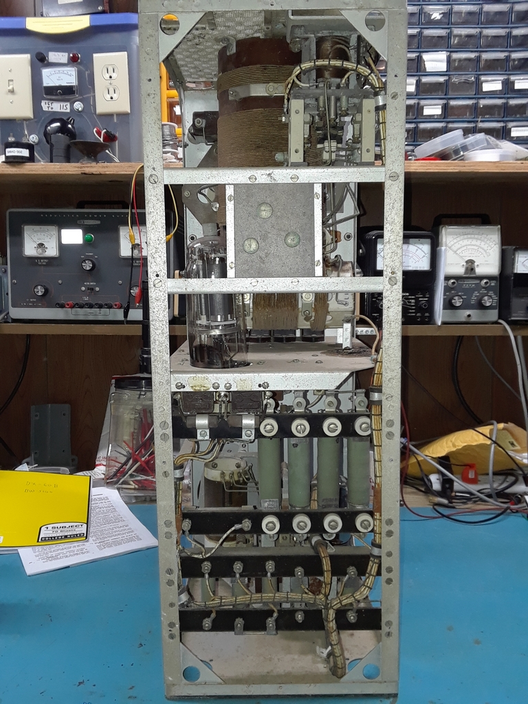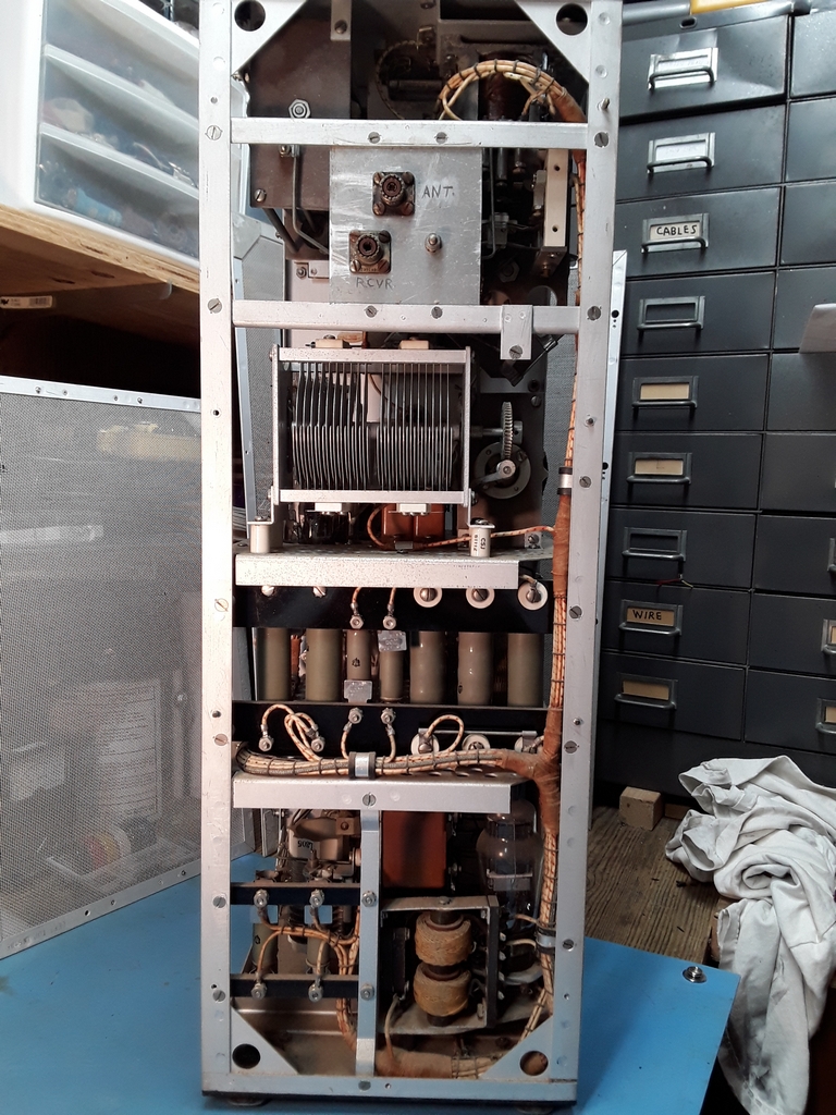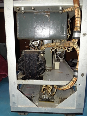 | The RMU was stored without a transit case so it will require some cleanup. What I was delighted to find was that it is also in stock condition and only missing the HV and Filament transformers. Since these are 800Hz transformers, that is not significant for me. |
