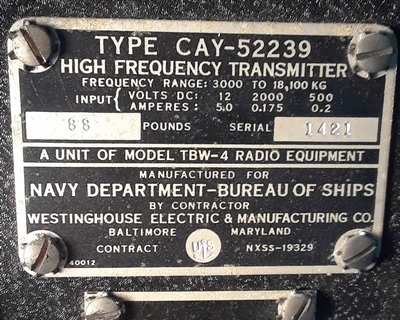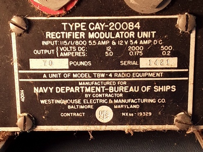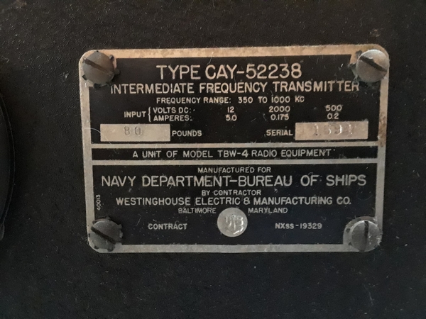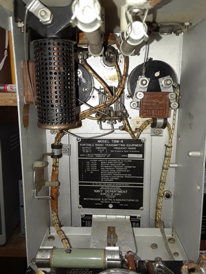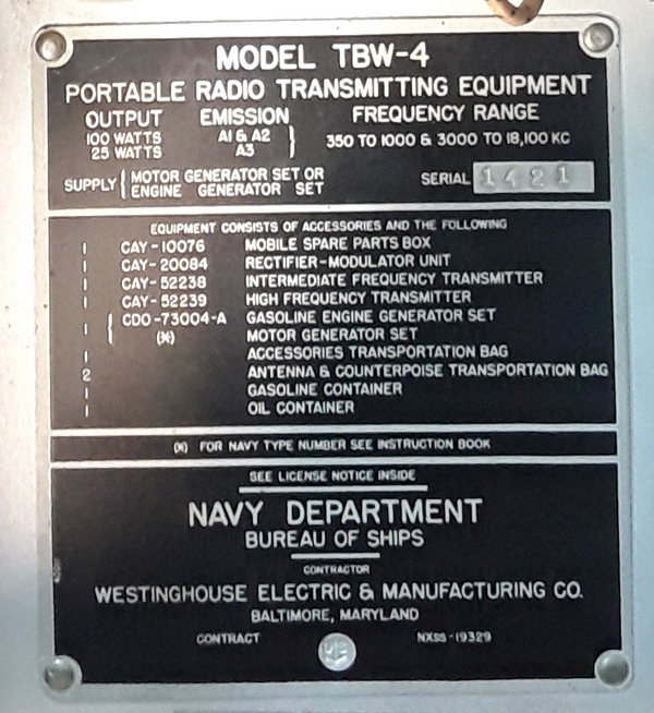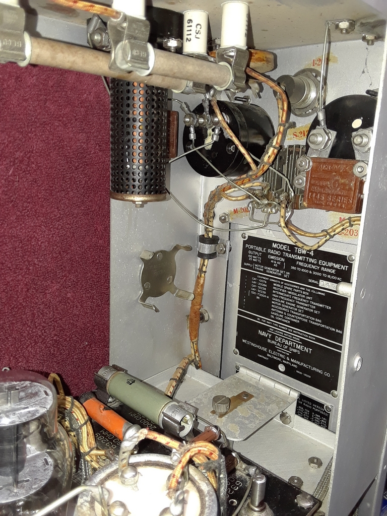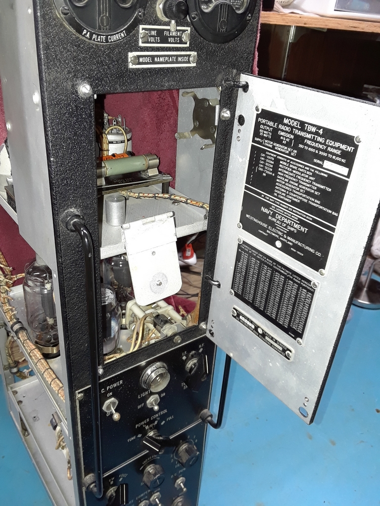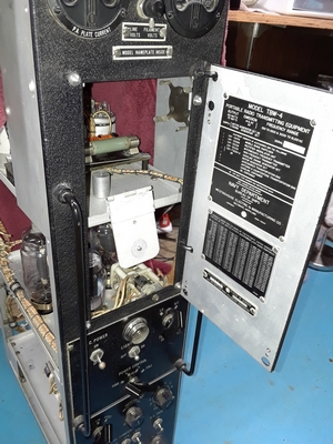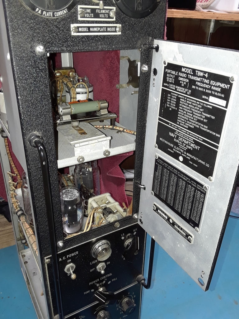 As mentioned in my write up of the TBW-5 transmitter elsewhere on my website, I was looking for an 803 tube socket when Mike Everette WA4DLF contacted me and said he had a TBW-4 and Rectifier Modulator Unit available and asked if I was interested. And, by the way, the TBW was in a transit case! Mike lives in Raleigh NC and that's a day trip for me!