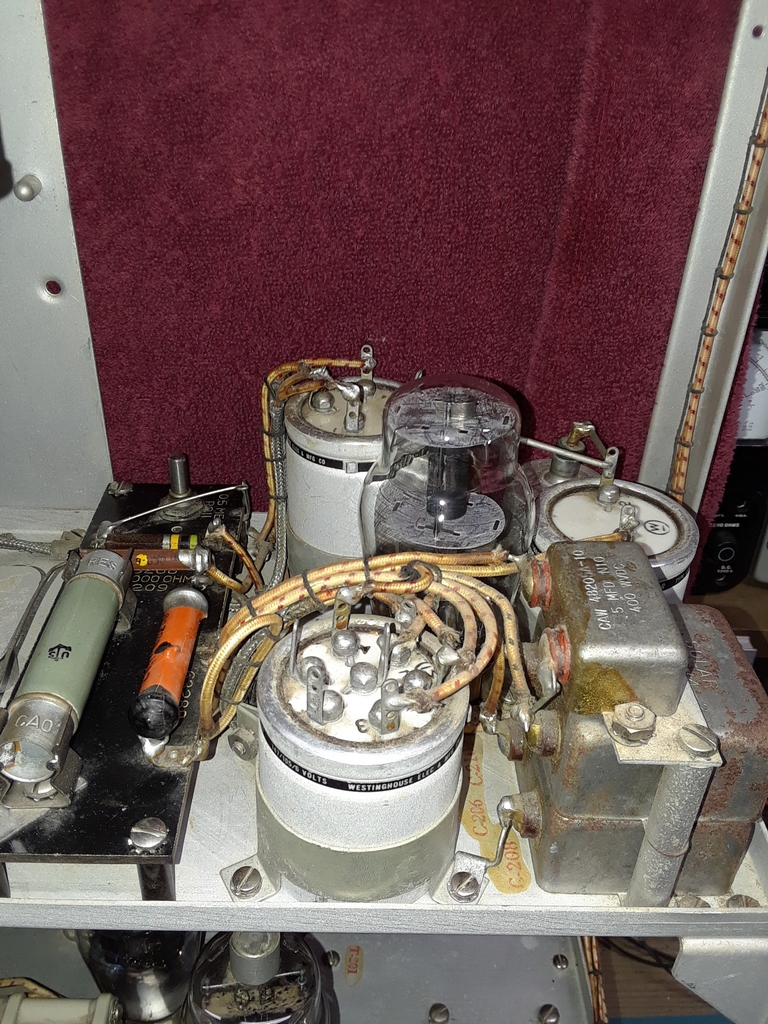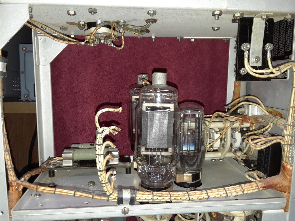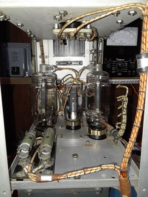 More photos of the upper deck. The meter on the left is for the dual line voltage / PA filament voltage and the