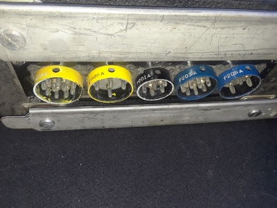 | Those large "resistors" that can be seen hanging from the top of roof of the RMU are not resistors! The are fuses F-201 and F-202. F-201 (3/8A 1 KV) is after the 500V filter stage and F-202 (1/2A 2.5KV) is after the 2KV filter capacitor. |