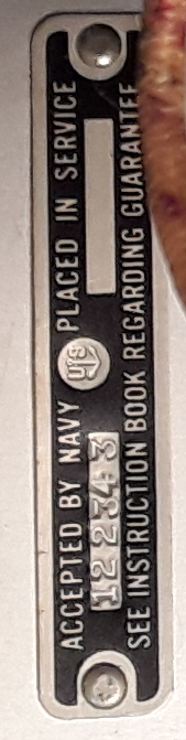 | The plate that holds the frequency card is actually a swinging door that opens to access the area where the mic and key are kept. The 4 pronged round clip held the RS-38 hand mic made by Telephonics Corporation. The hinged metal plate flips down for straight key storage. |